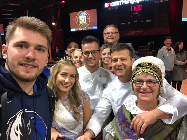 Košarkarskemu asu Luki Dončiću z ekipo so namreč pred tekmo postregli z mariborskim vinom in prekmursko gibanico.