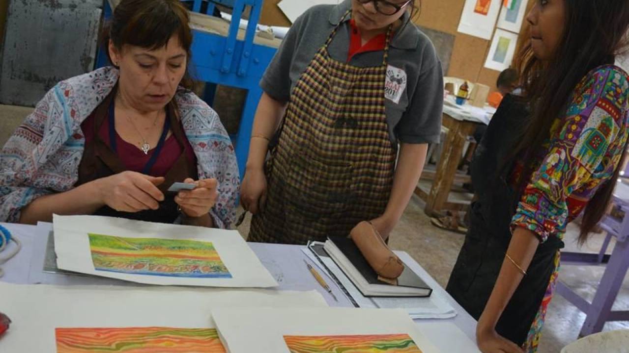 Maja Pegan je skupaj s Centrom grafičnih umetnosti Maribor promovirala slovensko in mariborsko likovno umetnost na področju grafike. V sklopu delavnic je v Indiji predstavlja različne načine odtiskovanja večbarvne grafike. Maja je sicer po izobrazbi profesorica likovne pedagogike, diplomo je pripravila na Škotskem v sklopu delavnic netoksičnih grafičnih tehnik in fotografije. Po študiju je z odliko končala pripravništvo in takoj za tem z bravuro opravila magistrski študij na Robert Gordon Univerzi v Veliki Britaniji.