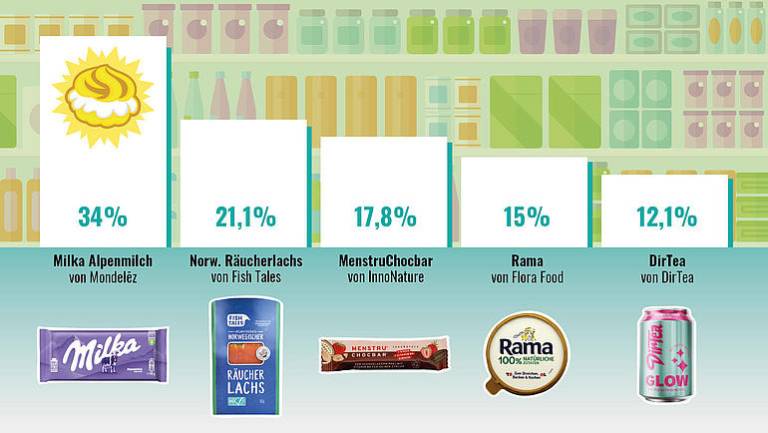 Na četrtem in petem mestu sta pristali Rama margarina skupine Flora Food Group in ledeni čaj Dirtea Glow raperke Shirin David. Pri margarini so pri Foodwatchu izpostavili, da se oglašuje z oznako »100 odstotkov naravne sestavine«, čeprav vsebuje številne »aditive in industrijsko predelane sestavine«. Shirin David pa je svoj ledeni čaj promovirala z vidnim »glow« učinkom za »lepo kožo in nohte«.