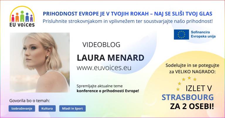 V okviru projekta EU VOICES si lahko ogledate videobloge Laure Menard, ki se v njih dotika področij mladih, športa, kulture in izobraževanja.