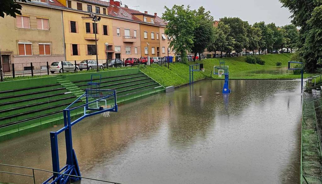 Velike količine padavin so v kratkem času povzročile hudournike na številnih cestah na območju Karlovca. Poplavljen je podvoz na Rakovcu in parkirišče v Krležini. Na Borlinu je strela udarila v hišo in povzročila požar.