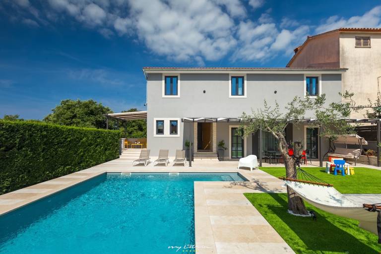 Moderna Villa Maria Andrea se nahaja v mestu Novigrad. V njej lahko prav tako biva osem oseb. Vila ima tri spalnice, tri kopalnice in čudovit ogrevan bazen na dvorišču