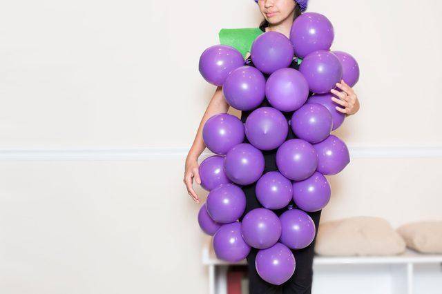 Za zelo izviren in zanimiv kostum lahko poskrbite le z nekaj baloni. Te napihnete in si pritrdite na obleko in postali boste čisto pravi grozd. Da boste bolj prepričljivi lahko temu dodate še kos zelenega blaga, ki naj bo izrezan v obliki grozdnega lista.