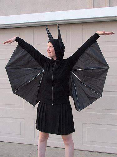 Za prepričljivi kostum netopirja potrebujete le črna oblačila in poceni dežnik, katerega vam ne bo žal žrtvovati. Dežnik prerežete na pol in si ga pritrdite na hrbet ter s tem pridobite prava netopirjeva krila.