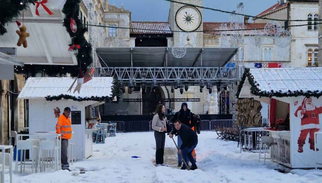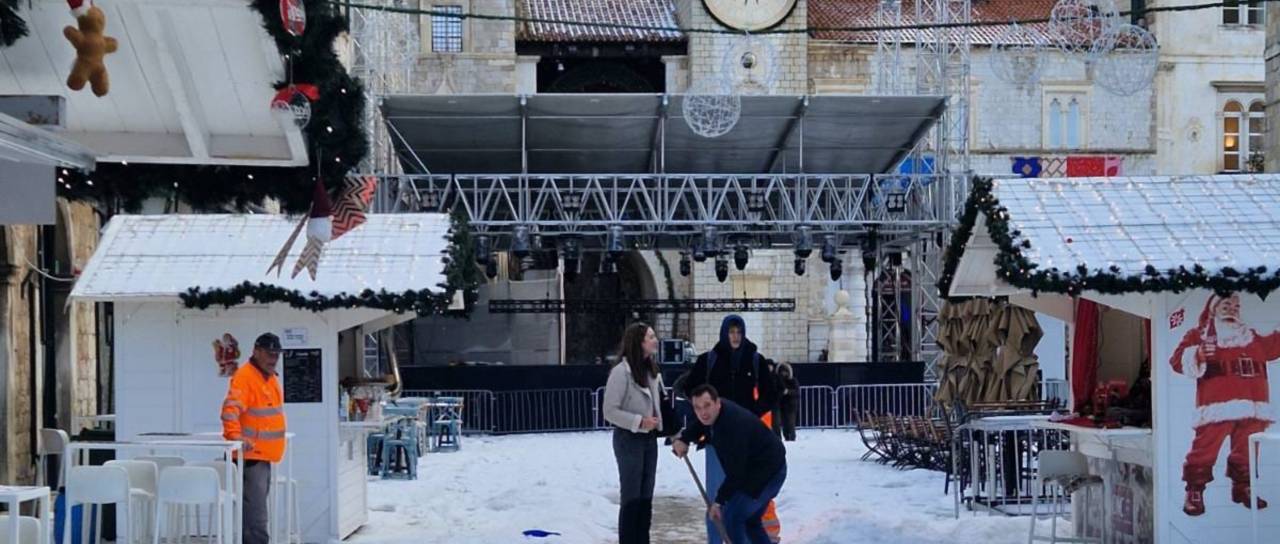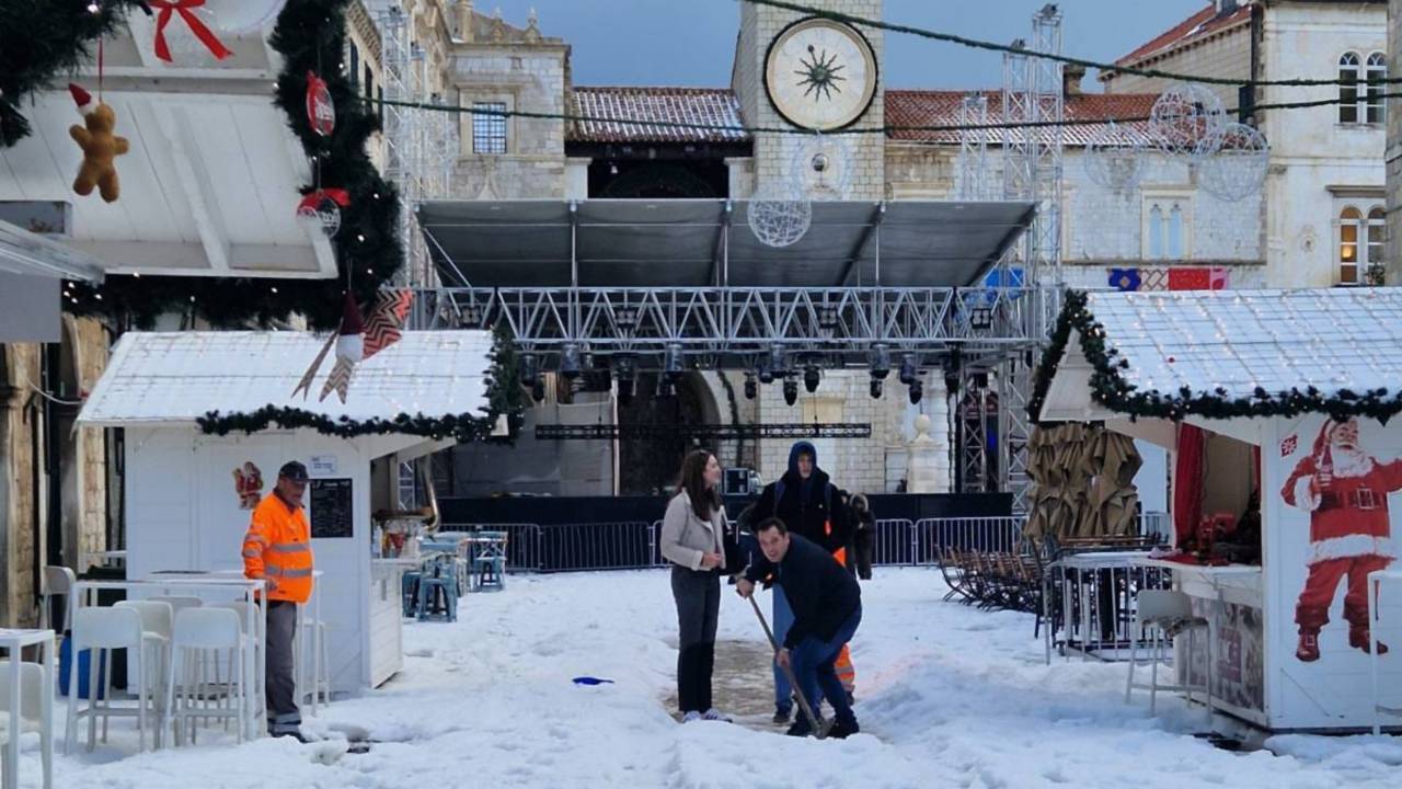 Dubrovnik je danes pobelila toča, ulice starega mestnega jedra pa so zaradi ledu postal drsališče.