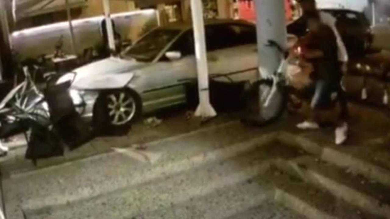Najprej je v gostilni prišlo do pretepa, nato je sledil pravi šok. Eden od udeležencev pretepa je z avtomobilom zapeljal na teraso, polomil mize in se na koncu zaletel v prostore stavnice.