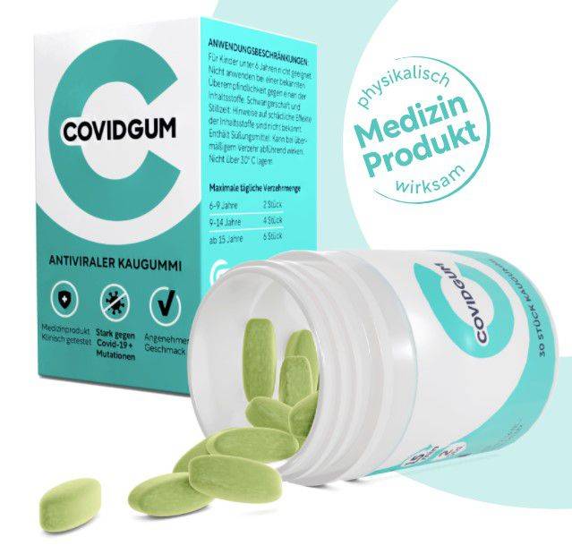 Covidgum je že na voljo v nemških lekarnah. Eno pakiranje vsebuje 30 žvečilnih gumijev in stane 9,90 evra.