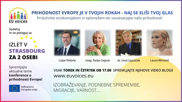 Slovenke in Slovenci lahko svoje ideje, mnenja in predloge podate tudi na novo vzpostavljeni spletni strani projekta EU VOICES in se tako potegujete za veliko nagrado – štiri dnevni izlet v Strasbourg za dve osebi.