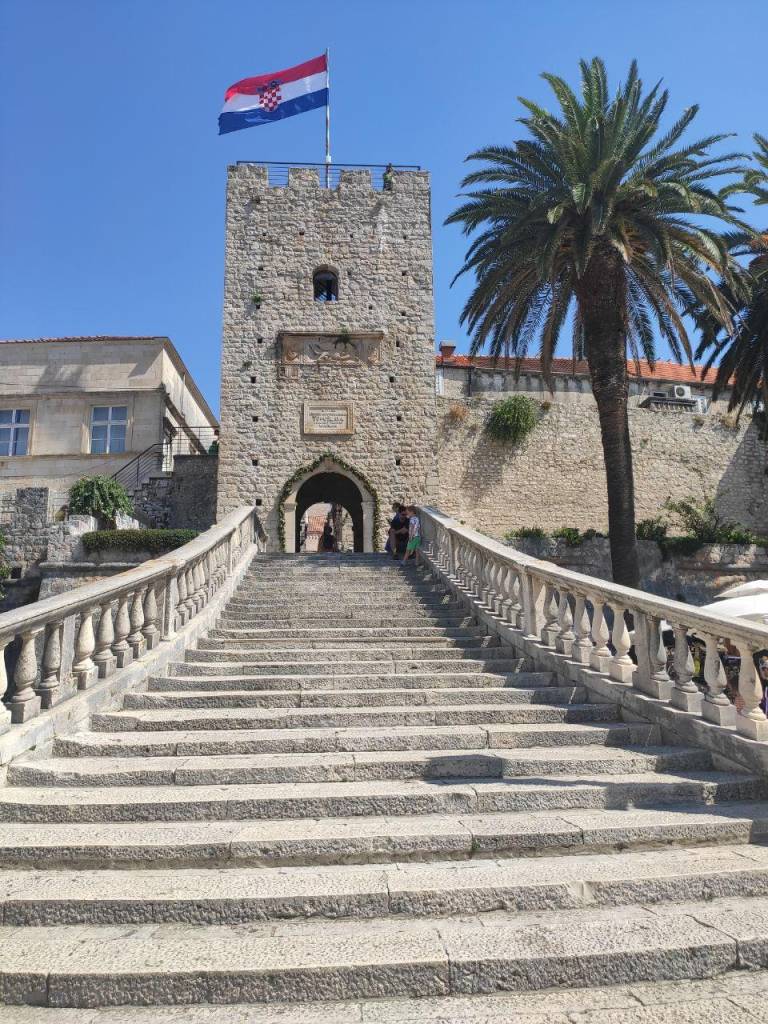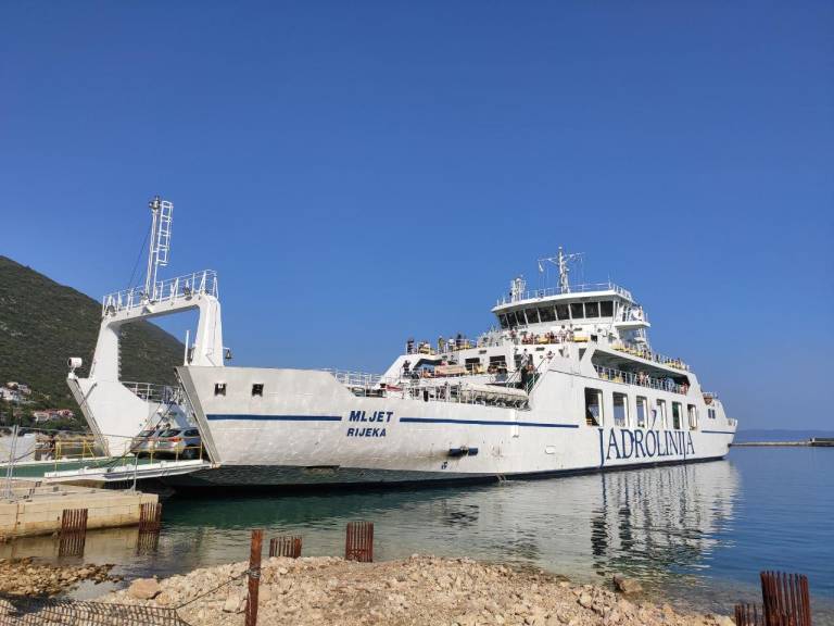 Nekaj več gneče je bilo na trajektu. Če se odpravljate na Korčulo, imate dve možnosti. Na trajekt se lahko vkrcate v Splitu. Direktna linija na Korčulo (Vela Luka) ali pa se vkrcate v Pločah, ki pelje na polotok Pelješac (Trpanj), na drugi strani polotoka v Orebići, pa se s trajektom odpeljete na Korčulo (Dominče).