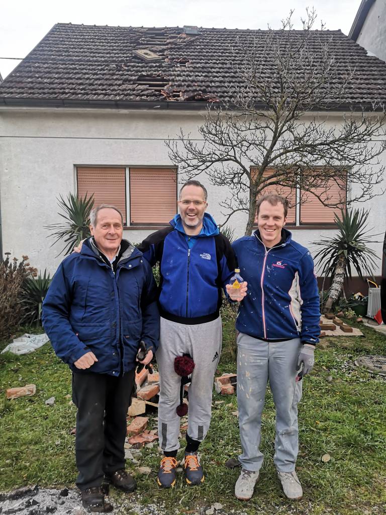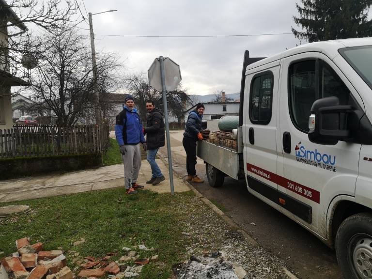 »Mesto je videti, kot da bi bilo bombardirano, praktično vsaka hiša je poškodovana, če ne drugega, ima poškodovan dimnik,« pravi Potrč. S svakom Leonom in še dvema paroma rok so se tja odpravili v soboto zgodaj zjutraj, domov pa so se vrnili pozno zvečer.