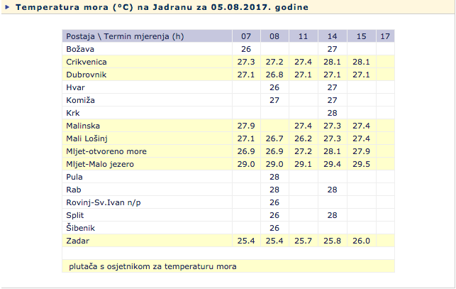 Podatki od včeraj kažejo, da je temperatura morja na nekaterih krajih na hrvaški strani Jadrana, kot so Crikvenica, Dubrovnik, Krk, Mali Lošinj, Pula in Rab dosegla 28 stopinj Celzija še poroča Index.