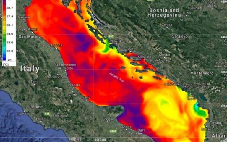 Temperatura večjega dela Jadranskega morja je dosegla 28 ali pa še več stopinj, kar pomeni, da so na večjem delu Jadrana te temperature za kar tri stopinje višje od povprečja.