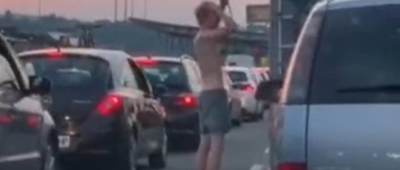 Saj ni res, pa je! Zaradi visokih temperatur in dolgega čakanja v koloni se je voznik stuširal kar na avtocesti.