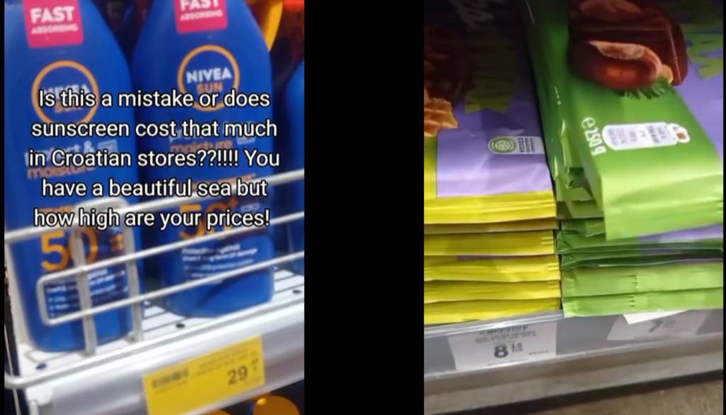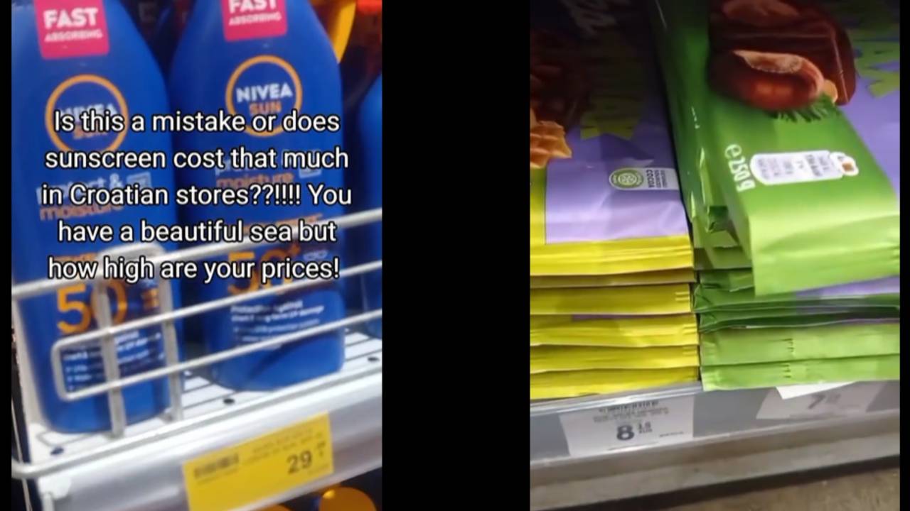 Na profilu WorldTraveler je objavljenih več videoposnetkov iz hrvaških trgovin, kjer se denimo krema za sončenje prodaja za skoraj 30 evrov, čips za več kot štiri, mala čokolada pa za več kot osem evrov. Lokacije niso razkrite, a sodeč po cenah gre skoraj zagotovo za obmorske turistične kraje.