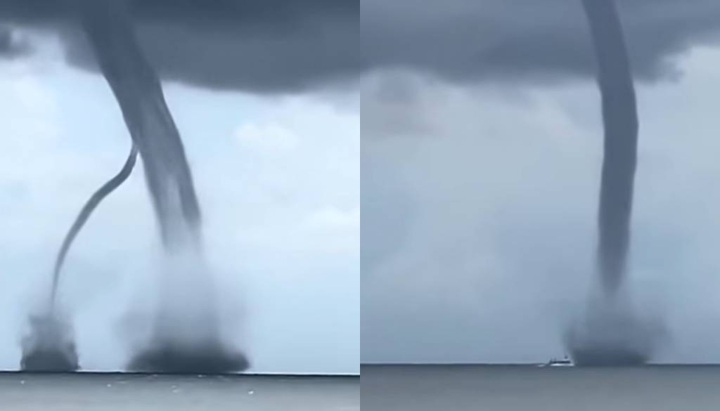 Gre za redkejši vremenski pojav, ki nastane ob močni nestabilnosti ozračja in je podoben tornadu, vendar se razvije nad vodo. Dogajanje so opazili številni očividci, posnetki pa prikazujejo vijugaste stebre vodne pare, ki segajo od neba do morja.