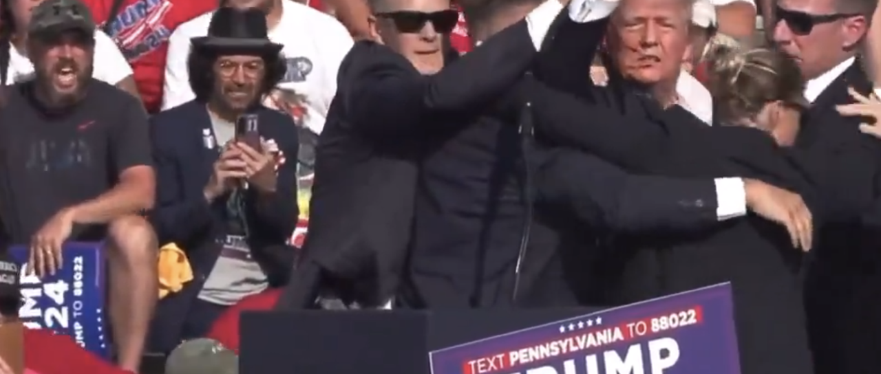 Trump je med govorom slišal več glasnih pokov. Padel je na tla, ob tem pa ga je nemudoma zaščitila njegova varnostna ekipa. Nekaj trenutkov kasneje se je Trump dvignil in dvignil pest v zrak. Nato so ga pospremili do njegovega voznega parka.