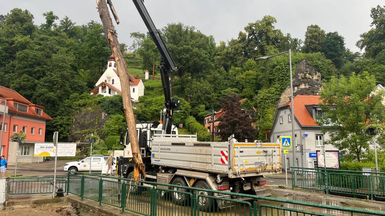 Nedaleč od avstrijskega Gradca je voda prestopila bregove in zalila mesto Übelbachtal. Gasilci so s ustreznimi ukrepi omejili škodo.