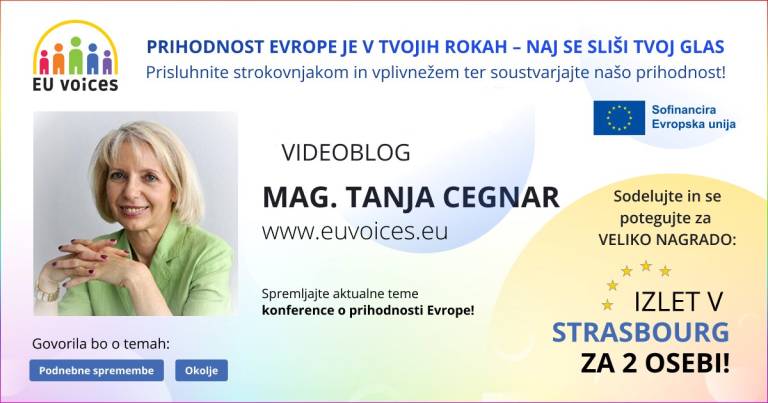 Poglejte si videobloge mag. Tanje Cegnar na spletni strani EU VOICES in pod njimi oddajte svoje mnenje. S komentarjem se lahko potegujete tudi za veliko nagrado: štiridnevni izlet v Strasbourg za dve osebi.