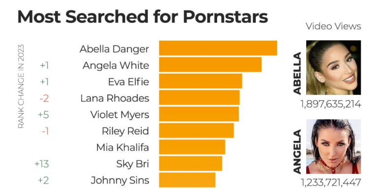Na prvem mestu ostaja pornoigralka Abella Danger. Na drugo mesto se je letos zavihtela Angela White, na tretje pa Eva Elfie.