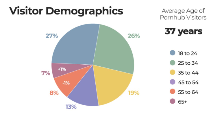 Največ obiskovalec Pornhuba je starih od 18 do 34 let in predstavlja več kot polovico celotne gledanosti.