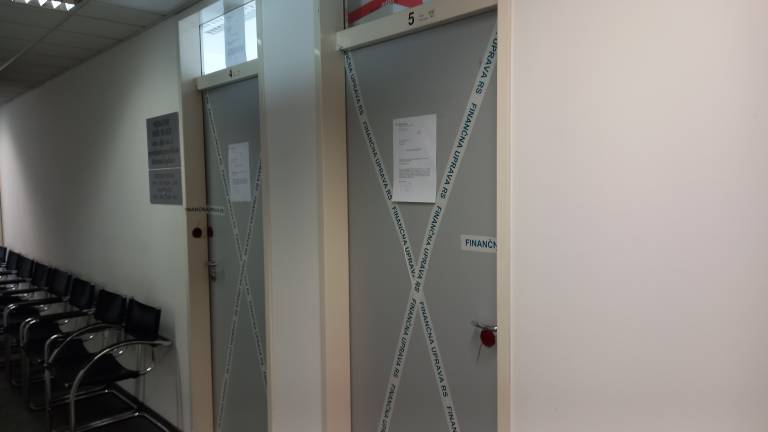 Pisarne v Trgovsko-poslovnem centru City v Mariboru so prelepljene trakom Finančne uprave Republike Slovenije in zapečatene.
