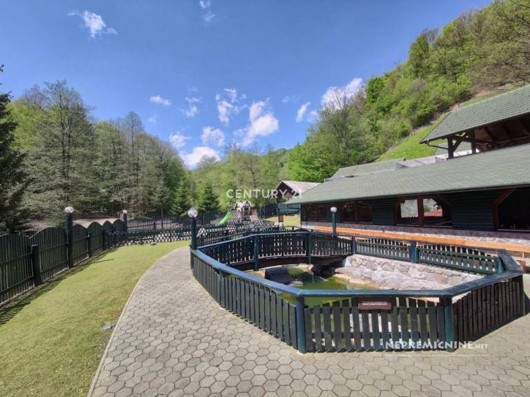 Zgrajen je bil leta 2001 in dograjen leta 2013. Poslovni prostori obsegajo 542,9 kvadratnega metra, stanovanje pa 113,2 kvadratnega metra. Nahaja se na mirni lokaciji ob potoku, obdan z gozdovi, z enostavnim dostopom po asfaltirani cesti. V bližini poteka pohodniška pot, ki privablja obiskovalce.