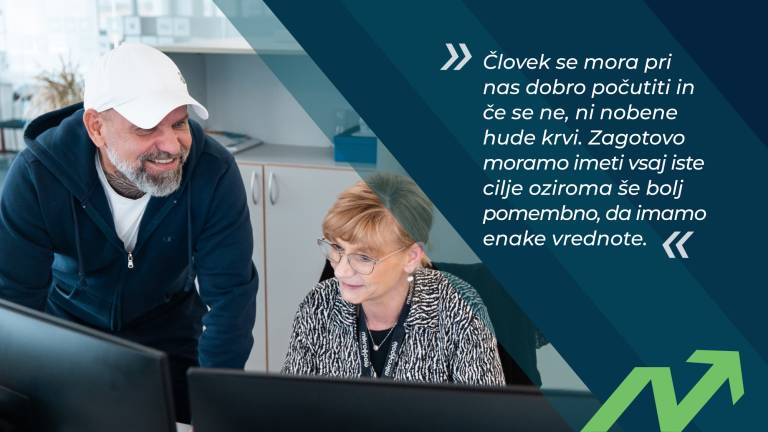 »Zagotovo. Verjamem, da moramo vsi vleči v isto smer in da se moramo v podjetju – to si res močno želim in si za to prizadevam – zbrati istomisleči ljudje. Vedno pravim, da smo malo posebni, da je naša kultura takšna, kot je. Ljudje nas po tem poznajo, a hkrati tudi mi nismo za vsakega.
