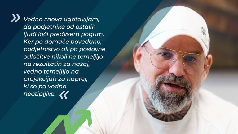 Tu moraš zaupati svojemu instinktu, svojim občutkom. Znati moraš povezati stvari, ki se dogajajo, pogledati v prihodnodt – če se malo pošalim – in potem moraš imeti res pogum, da narediš korak naprej. Zaupati si moraš, da si se prav odločil, saj je podjetništvo tek na dolge proge in pri tem potrebuješ vztrajnost.