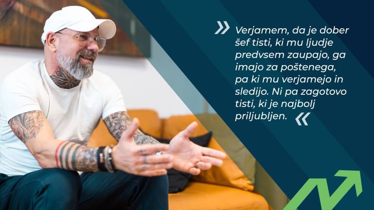 Verjamem, da je dober šef tisti, ki mu ljudje zaupajo, ga imajo za poštenega ter mu verjamejo in sledijo. Zagotovo pa to ni tisti, ki je najbolj priljubljen. Vidim, da moje poteze včasih niso priljubljene ali pa jih sodelavci ne sprejmejo z navdušenjem, a na dolgi rok se vedno pokaže, da gremo v pravo smer.«