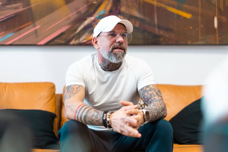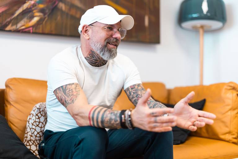 Je pa res, da je na začetku težko biti povsem takšen, kot si. Na začetku se moraš prilagajati. To vsakemu povem. Tudi jaz sem na začetku hodil v obleki in kravati, dokler ne razviješ svoje osebnosti oziroma posla do točke, ko lahko začneš bolj iskreno nastopati. Tudi pri meni se je to razvijalo postopoma. Marko ni prišel potetoviran in rekel: ‘Evo, takšen sem, zdaj pa bomo delali ali pa ne.’ To je raslo, tako kot raste osebnost.«