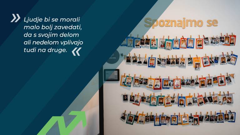 »Sigurno smo vsi delali napake in tako je prav. Ene so manj boleče, ene bolj, ene so vkalkulirane, kar je normalno, ker se učimo iz njih. Mogoče smo v preteklosti kdaj izgubili kakšno osebo, ker nismo pravočasno prepoznali nezadovoljstva, izzivov ali stisk, s katerimi se je kdo soočal. Ko smo se tega začeli zavedati, smo sprejeli kup ukrepov, ki nam pri tem pomagajo.«