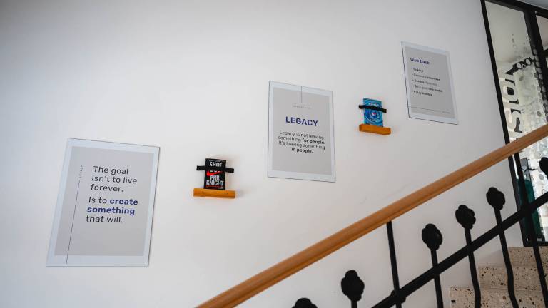 Ena prvih stvari, na katere opozori, je, da v podjetju nimajo dvigala, saj želi zaposlene (in sebe) spodbuditi, da se med delom vsaj malo sprehodijo. Na voljo imajo izključno zdrave prigrizke, kar, kot v smehu prizna, ni vedno sprejeto z navdušenjem.