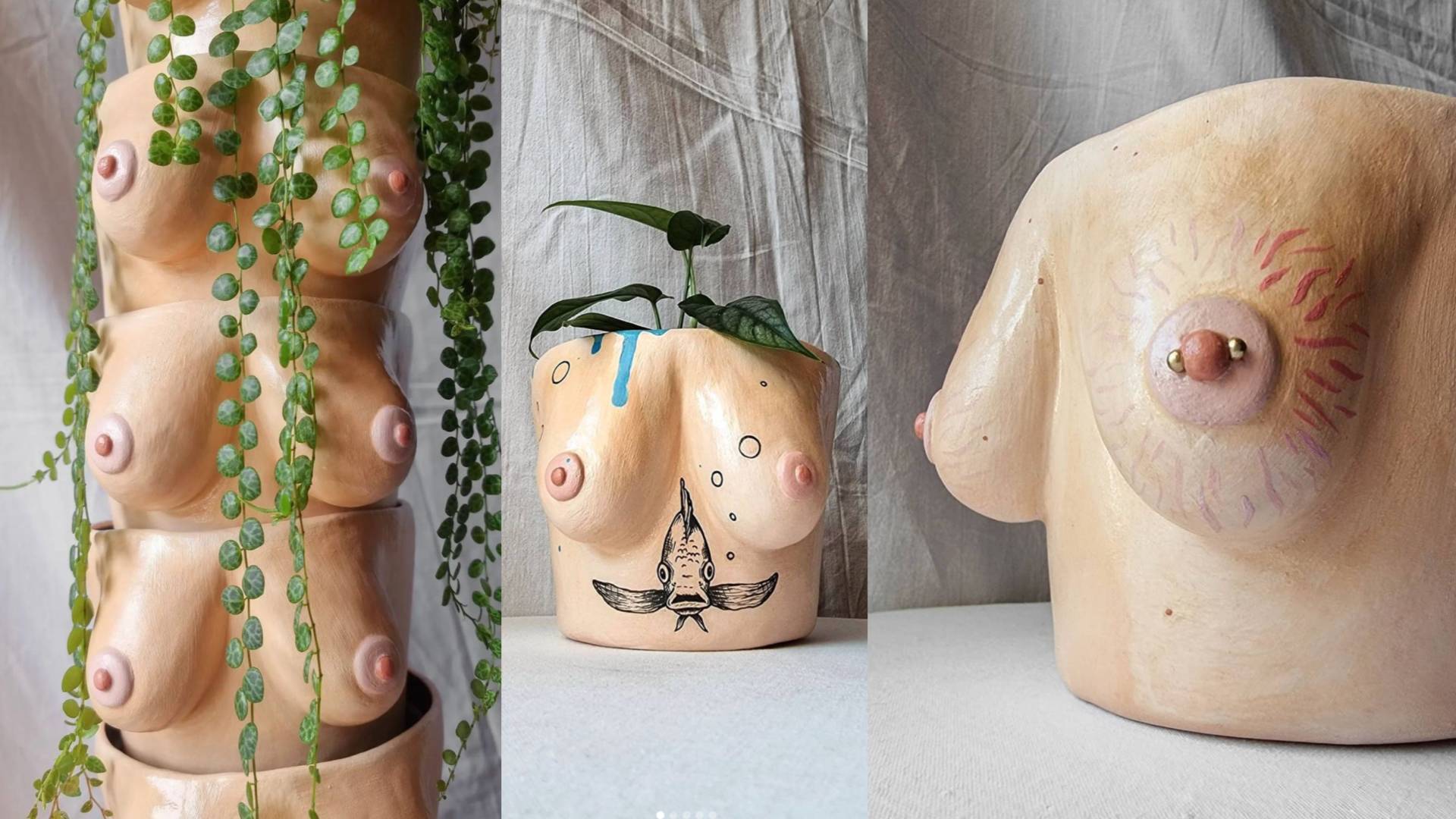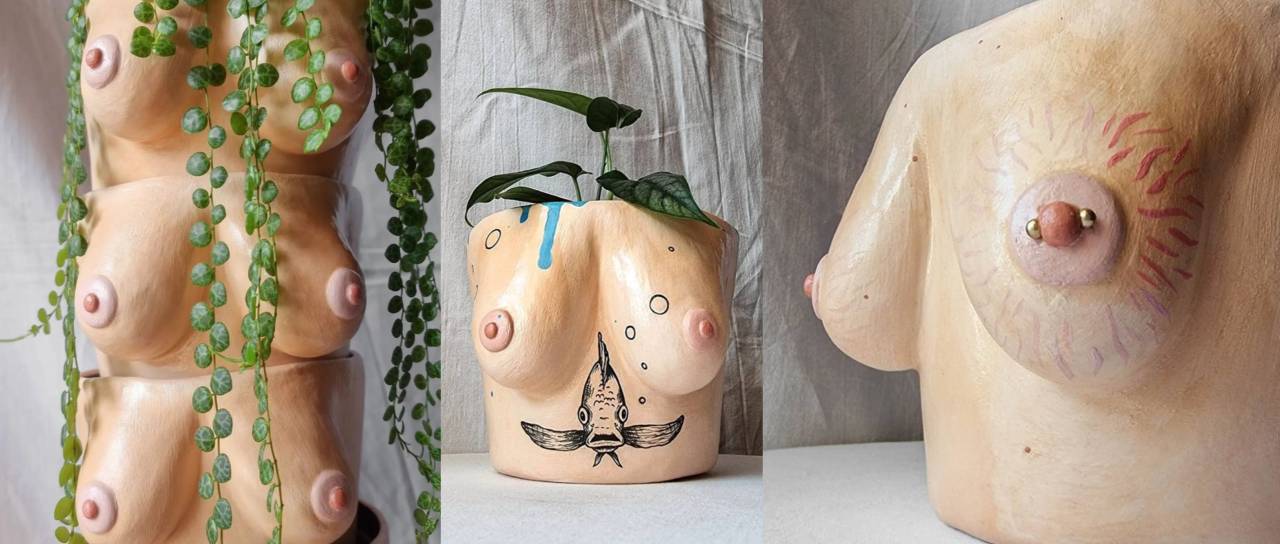 Ines Žarki, umetnica, ki ustvarja pod imenom Wicked pots, se pri svojem delu poigrava s podobo ženskih prsi.