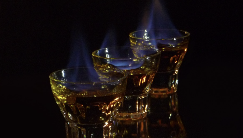 Ugotovljeno je bilo, da je 19-letnik pred pitjem prižgal žgano pijačo, pri nagibu kozarca pa se polil po licu in vratu in zadobil opekline.
