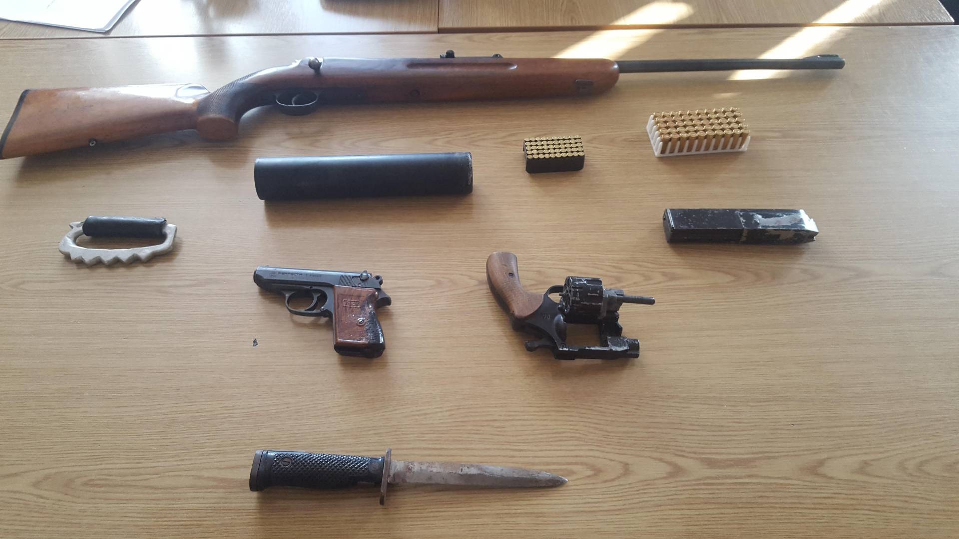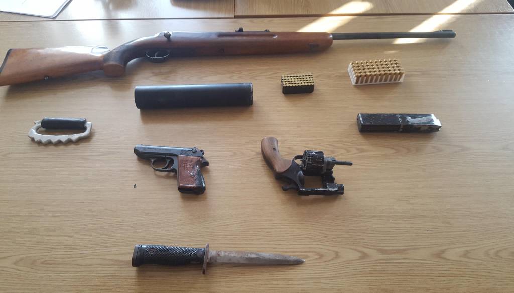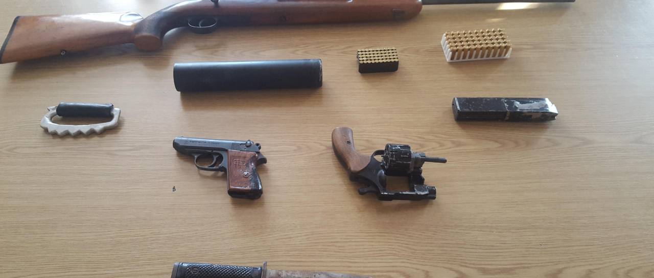 Kot so sporočili iz Policijske uprave Maribor je šlo za lovsko puško znamke CZ, dve pištoli, znamke Perfecta in Umarex, dušilec za puško, 292 nabojev različnih kalibrov, kovinski bokser in bodalo z obojestranskim rezilom.
