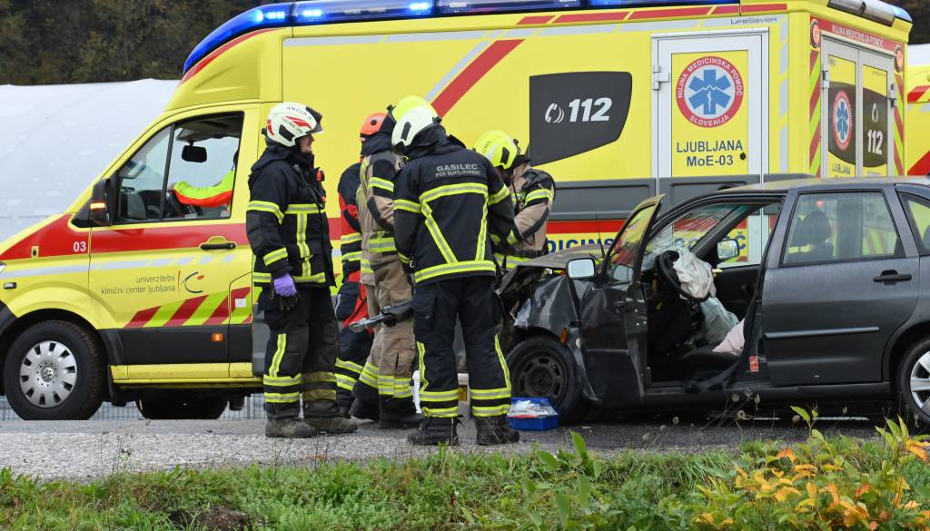 Tri osebe huje poškodovane, voznico odpeljal helikopter