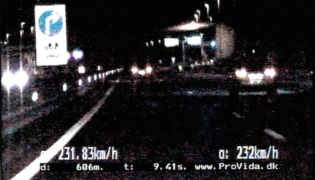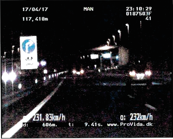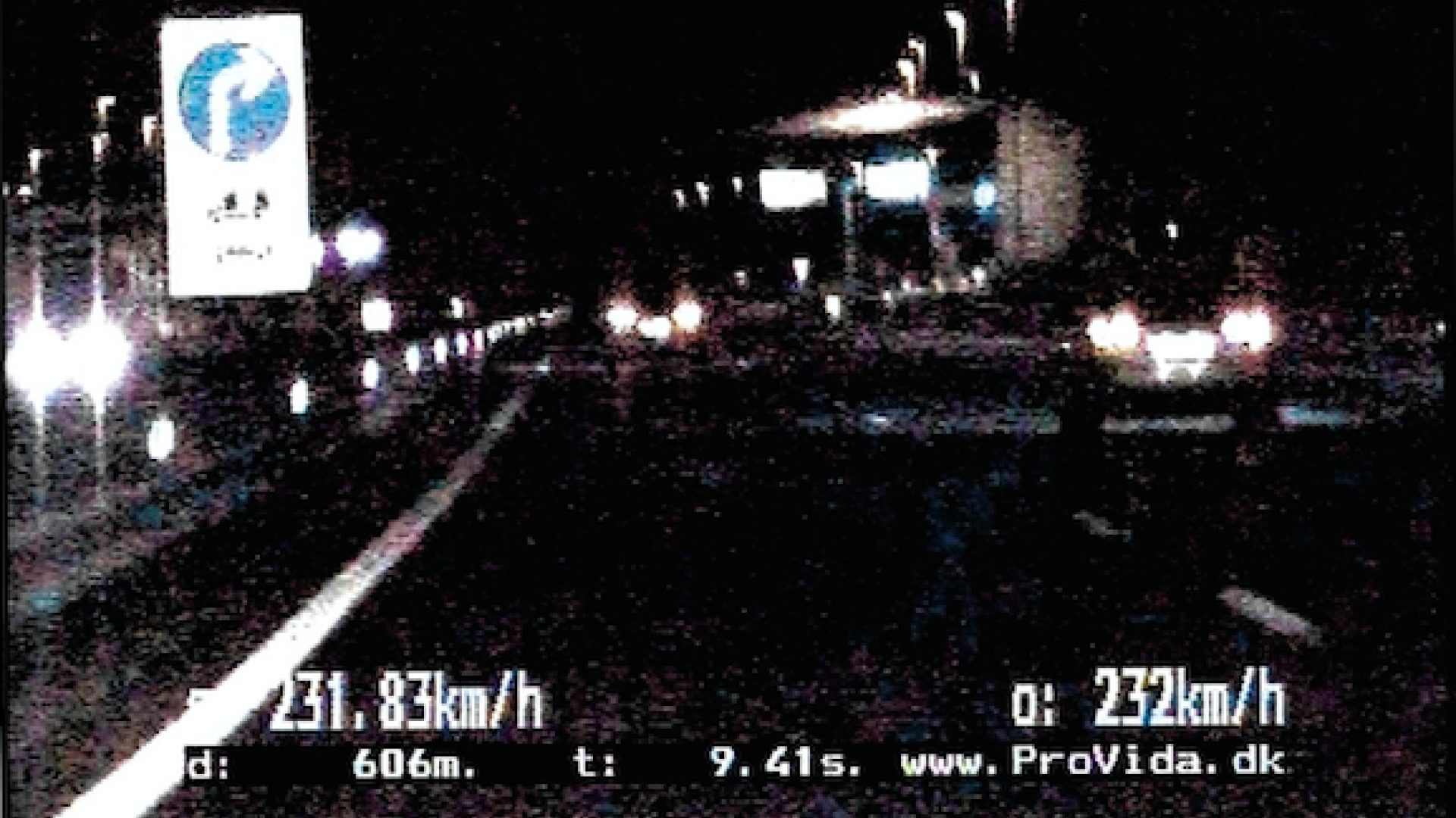 Medtem ko so okoli 23. ure opravljali nadzor prometa z vozilom z vgrajenim video-nadzornim sistemom Provida, so ugotovili, da je 37-letni državljan Avstrije, voznik osebnega avtomobila znamke Audi, tip A6, na razdalji 606 metrov vozil s povprečno hitrostjo 231,83 kilometrov na uro.