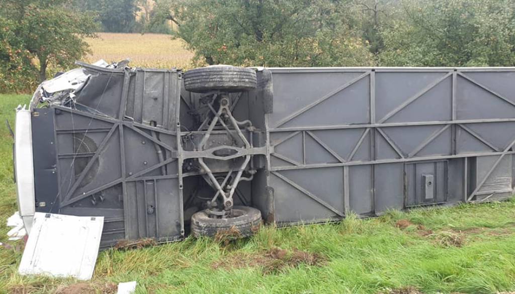 V ponedeljek, okoli 10.30, je prišlo do trčenja avtobusa in tovornega vozila. Avtobus se je nato prevrnil in pristal v jarku.
