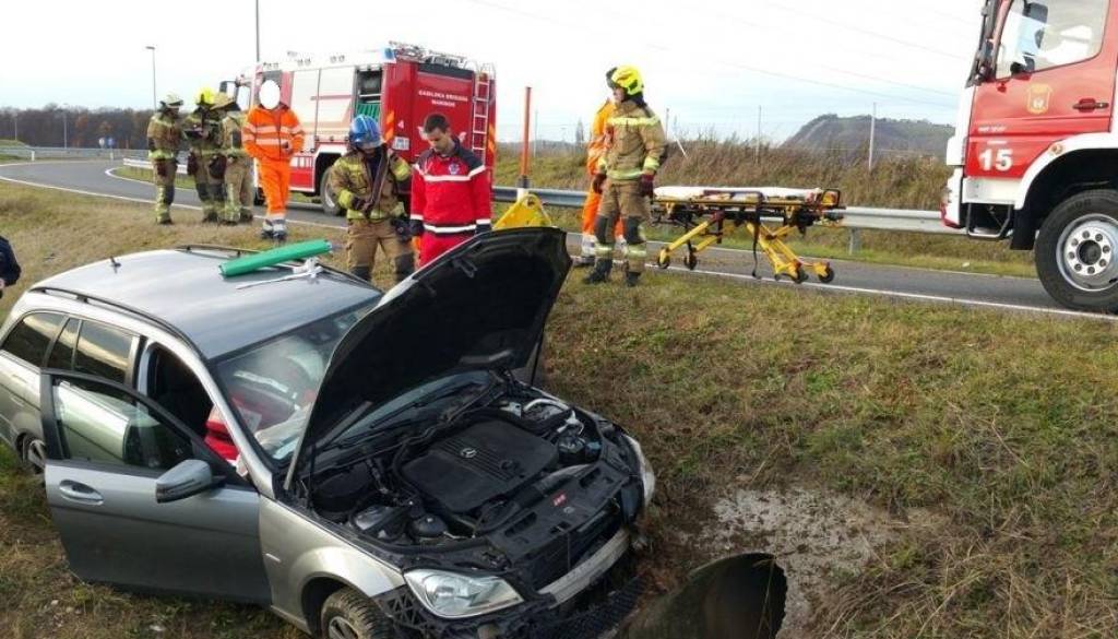 Ob 8.28 je v kraju Trate, občina Šentilj, voznik osebnega vozila zapeljal v obcestni jarek in obstal na desnem boku. Pri tem je ena oseba ostala ukleščena v vozilu. Gasilci GB Maribor in PGD Gornja Radgona so s tehničnim posegom rešili osebo iz avtomobila, odklopili akumulator in nudili pomoč policiji.