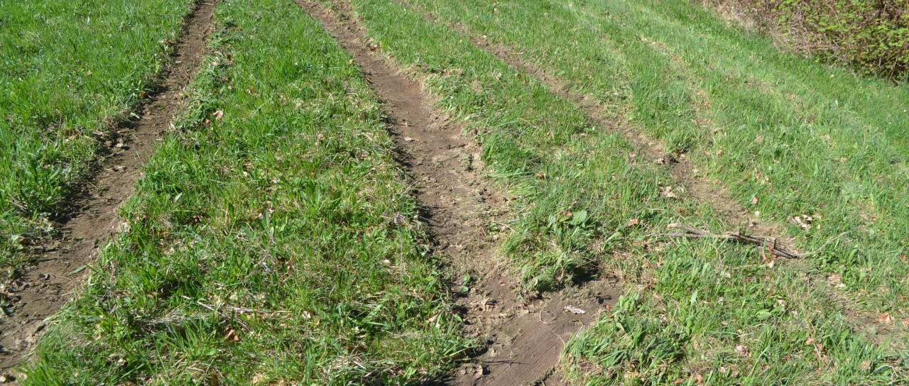 Tik pred Dobrno je z vozišča zapeljal na makadamski odcep in vožnjo nadaljeval po gozdni vlaki, nato pa z vozilom obstal na razmočenem travniku.