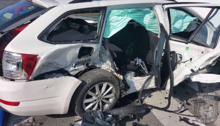 V trčenju v križišču Ptujske ceste in Špeline ulice sta se dve osebi tudi lažje telesno poškodovali.
