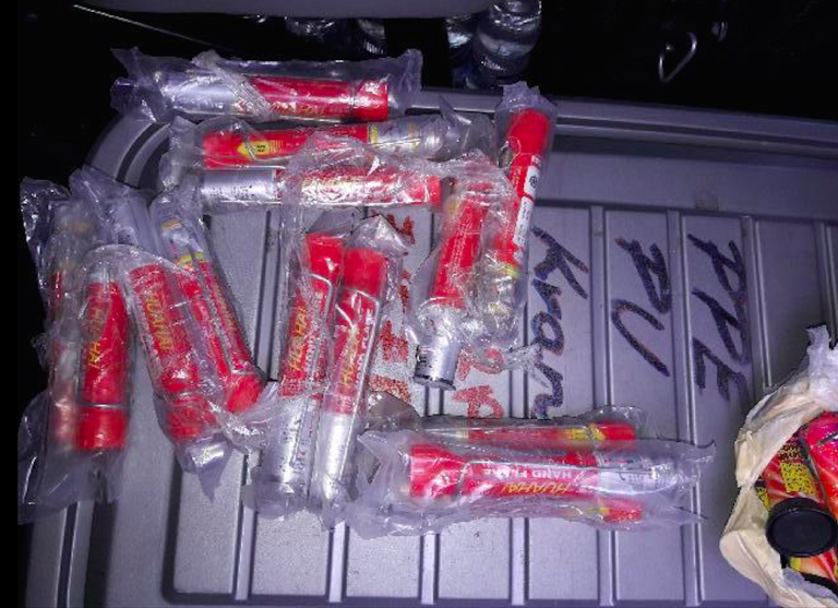 Še pred tekmo so policisti na južni tribuni našli skritih 55 bakel in 4 fontane. Pri dveh obiskovalcih prireditve so našli in jima zasegi skupno tri bakle. Zoper oba bo podan obdolžilni predlog pristojnemu sodišču, so sporočili iz Policijske uprave Maribor.