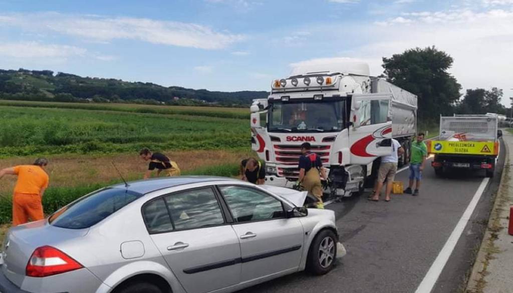 Gasilci Ptujskega so na svoji Facebook strani 112 Ptuj razkrili še, da sta na glavni cesti med Ptujem in Ormožem, pri naslovu Gorišnica 147, trčila osebni avtomobil in tovornjak.