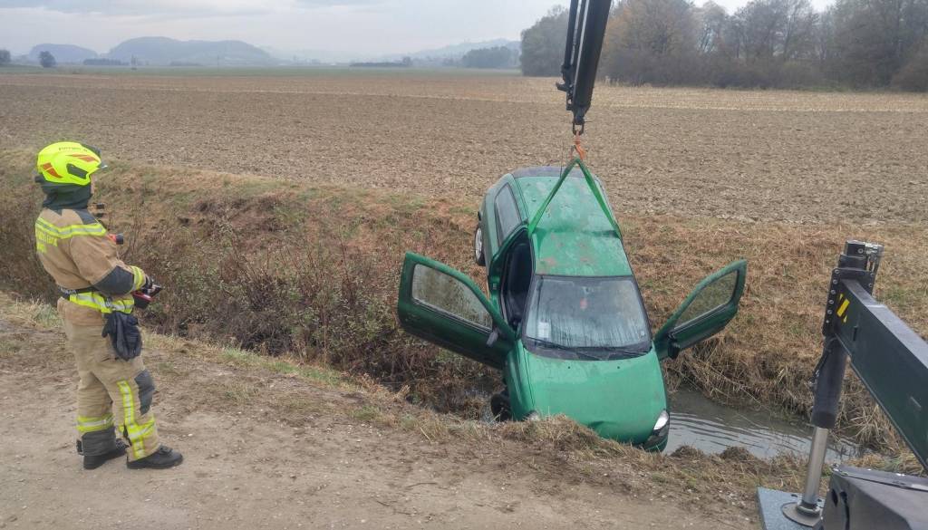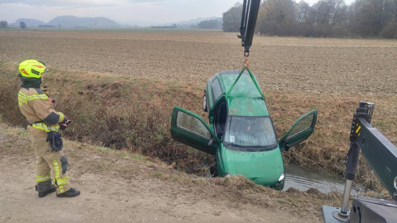 S tehničnim manevrom so potem gasilci vozilo potegnili iz potoka. Do izlitja nevarnih tekočin v potok ni prišlo.