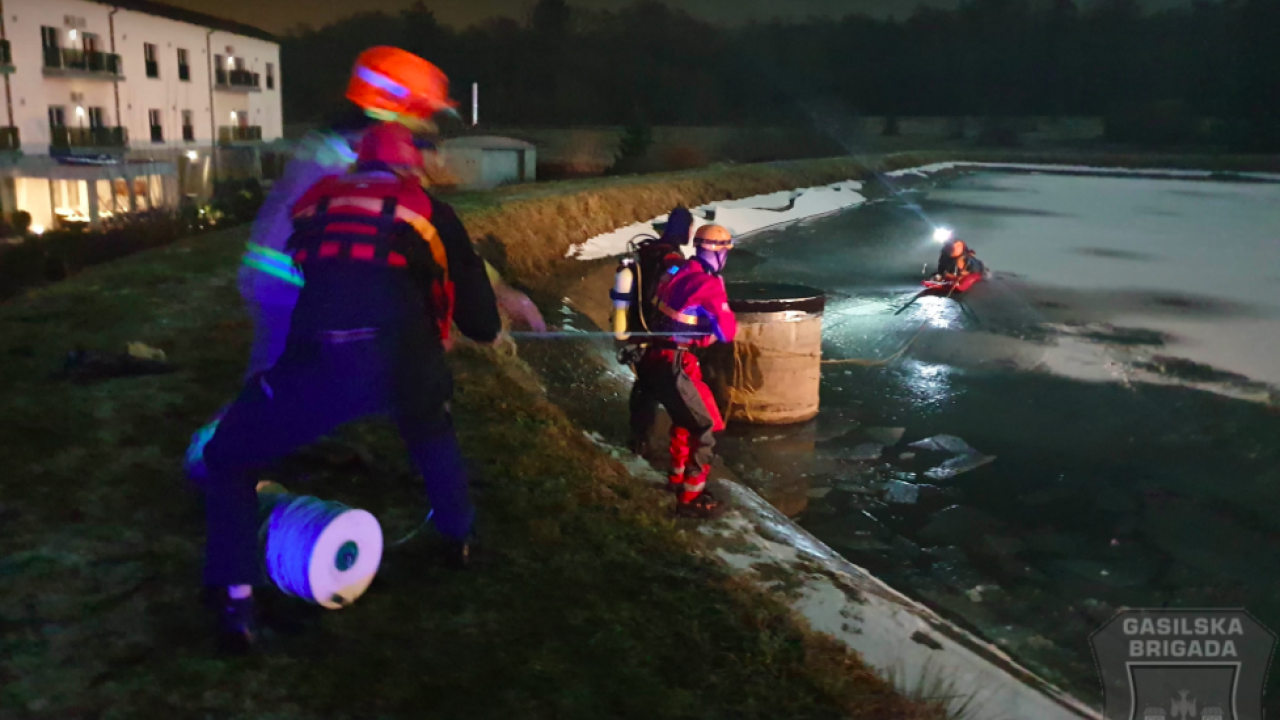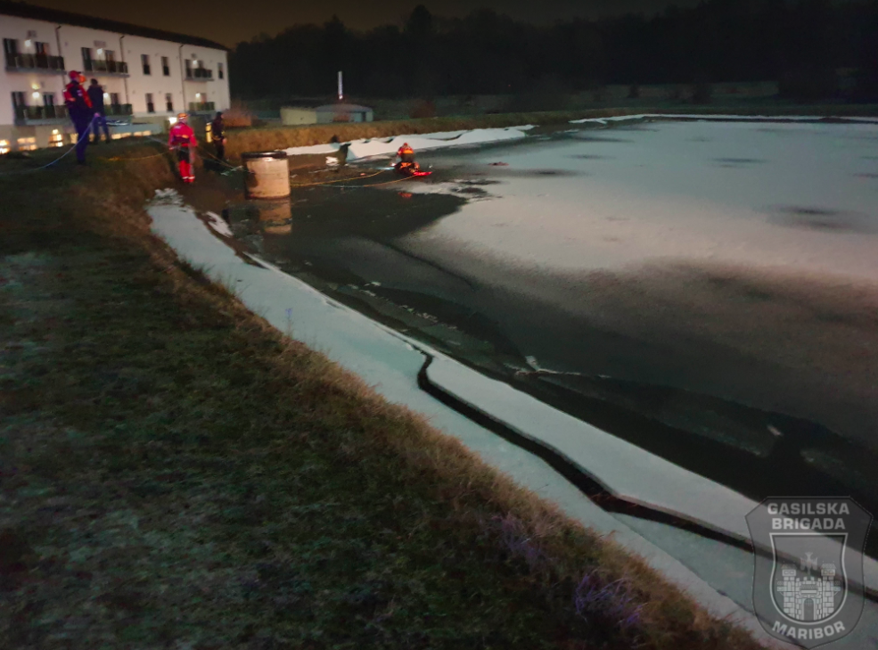 Gasilci Gasilske brigade Maribor so včeraj, ob 18.17, na Pohorski ulici v Mariboru iz zaledenelega ribnika rešili dve osebi.