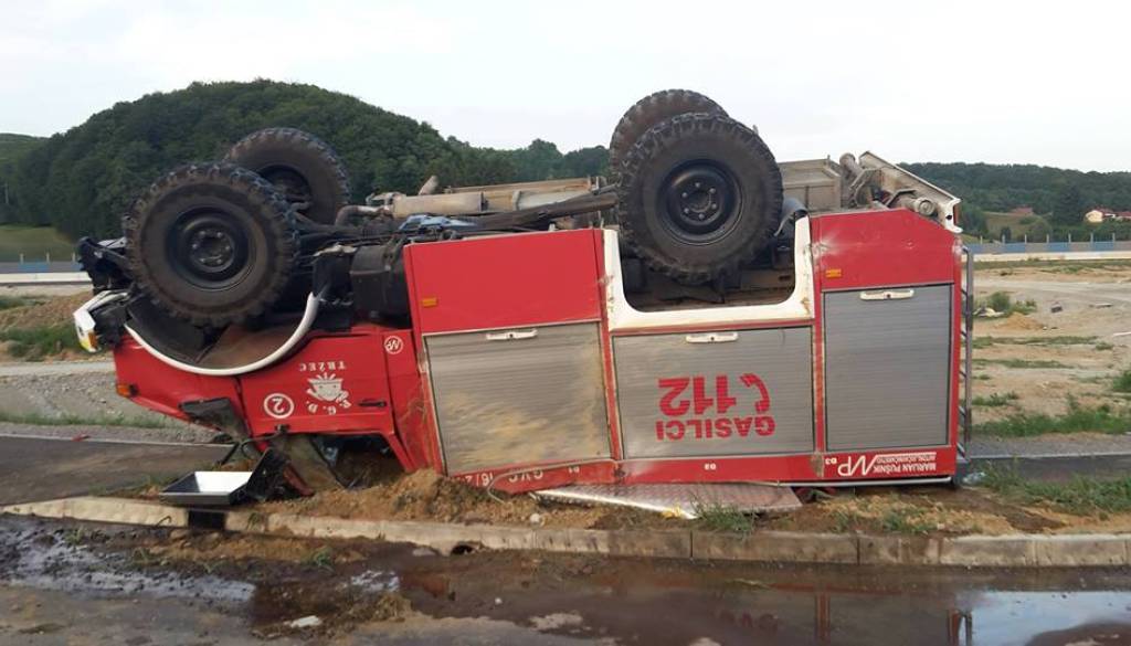 Gasilsko vozilo je v celoti poškodovano in nevozno, tri gasilce pa so reševalci prepeljali v bolnišnico.