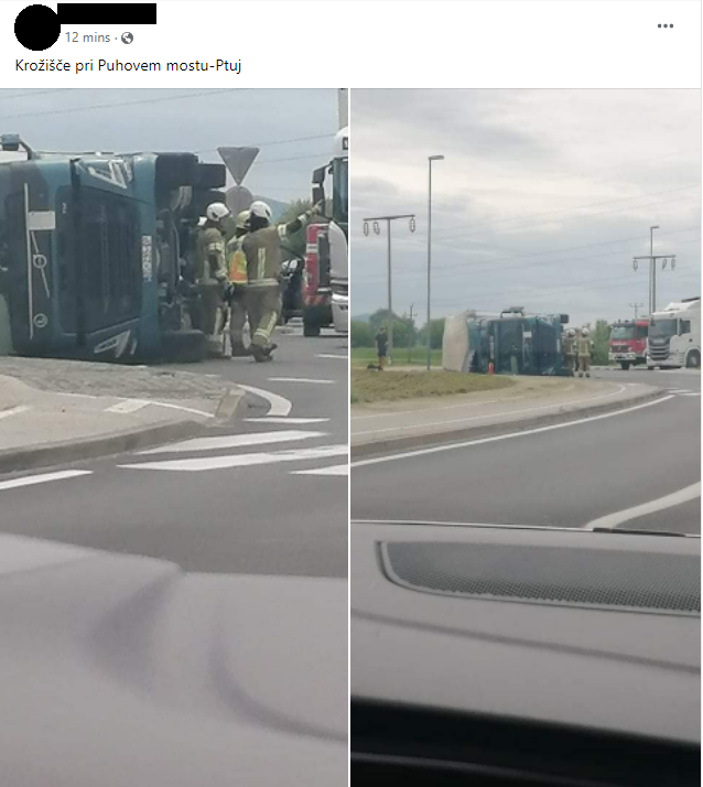 Do prometne nesreče je prišlo na krožišču pri Puhovem mostu, krožišču, ki povezuje obvoznico, Ormoško cesto, Puhovo ulico.