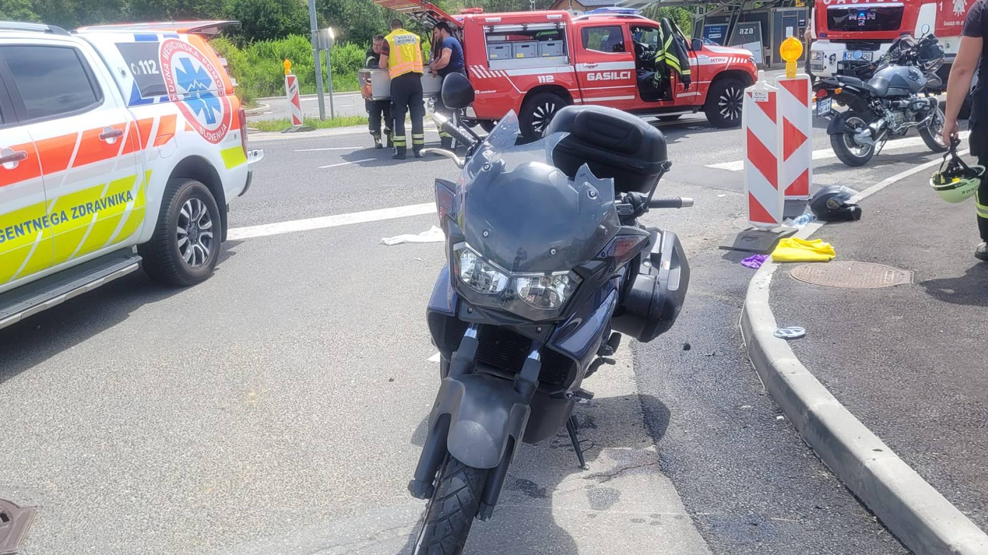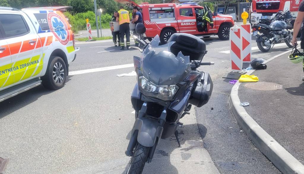 Trčenje avtomobila in motorista, eno osebo prepeljali v nadaljnjo oskrbo.