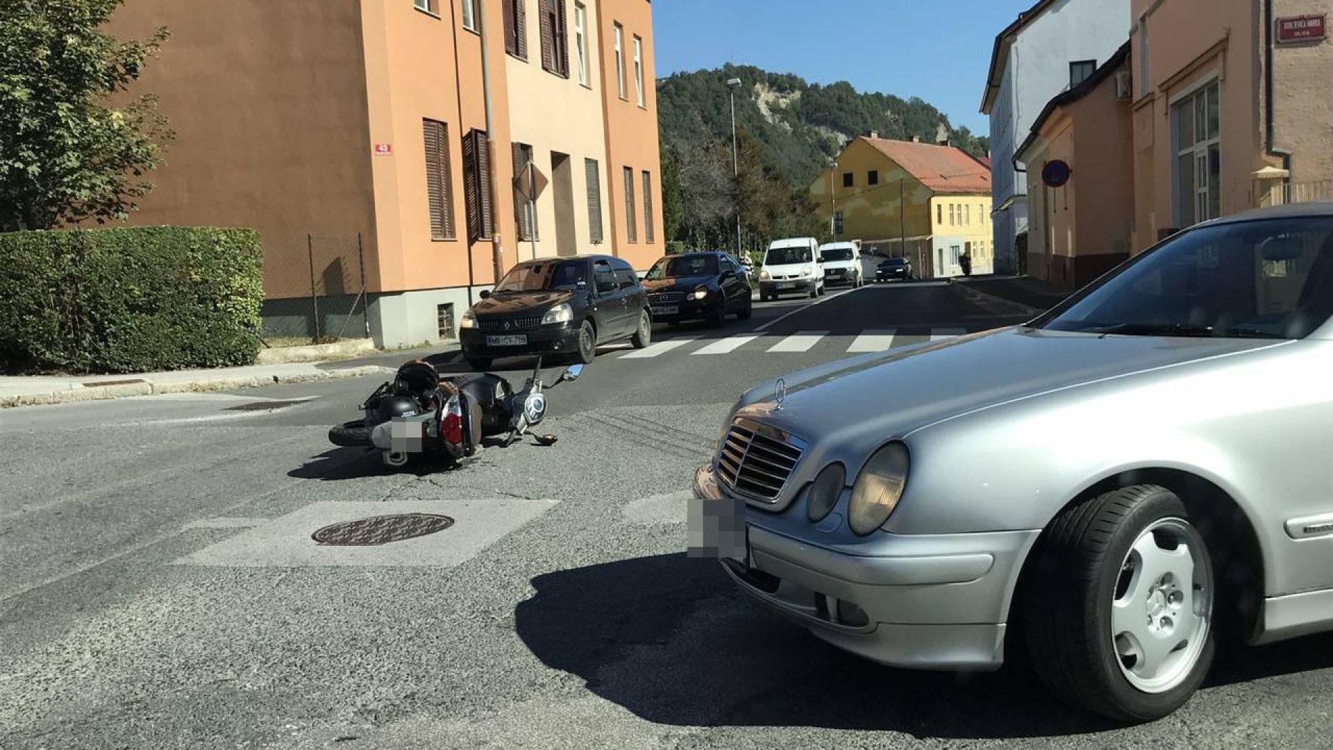 Po besedah očividcev je voznik osebnega avtomobila izsilil prednost vozniku skuterja.