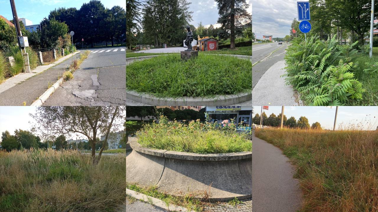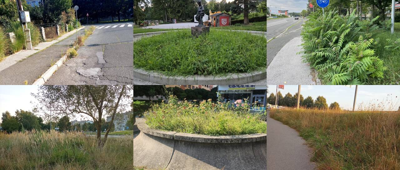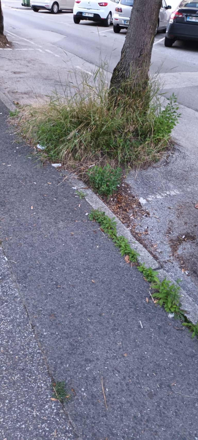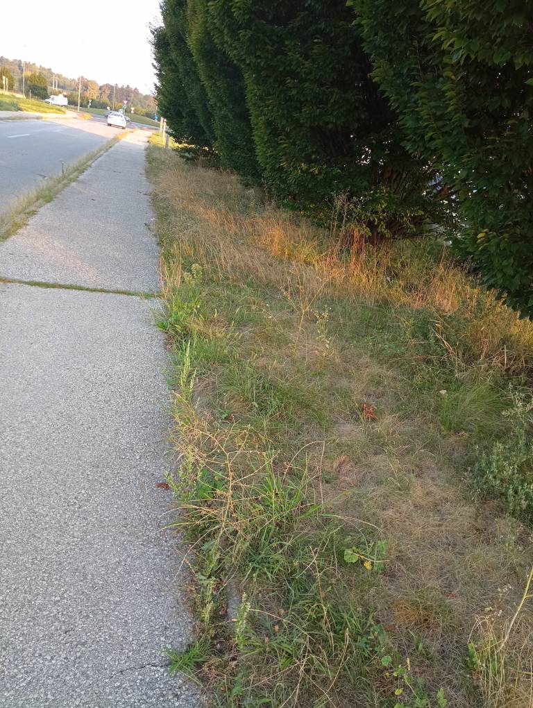 Iz razpok v asfaltu raste trava, podobno ob robnikih in na pločnikih. Zaraščeni pločniki predstavljajo tudi nevarnost za pešce, še posebej za starejše osebe, invalide in otroke, saj se zaradi preraščene vegetacije marsikje zmanjša prehodnost poti.